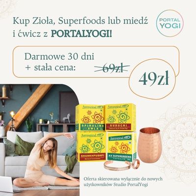 „Kup Zioła Aurospirul lub wyroby miedziane i otrzymaj dostęp do Studio PortalYogi”