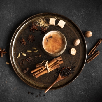 Poza fizyczną aktywnością warto pamiętać o szeregu przypraw, które pozwolą nam poczuć wewnętrzne ciepło, co pozwoli podtrzymać również agni (ogień trawienny), a w konsekwencji zachować w równowadze układ odpornościowy. Pomogą w tym takie rozgrzewające przyprawy jak: imbir, goździki, cynamon, kurkuma, kardamon (który uwielbiam w każdej ilości 😉 ). Już sam zapach tych przypraw, w szare, zimowe dni, wnosi nieco światła i ciepła do codzienności. Połączenie ich z ajwanem, koprem włoskim, czy lukrecją dodatkowo stanowi wsparcie dla układu oddechowego, trawiennego i krążenia.