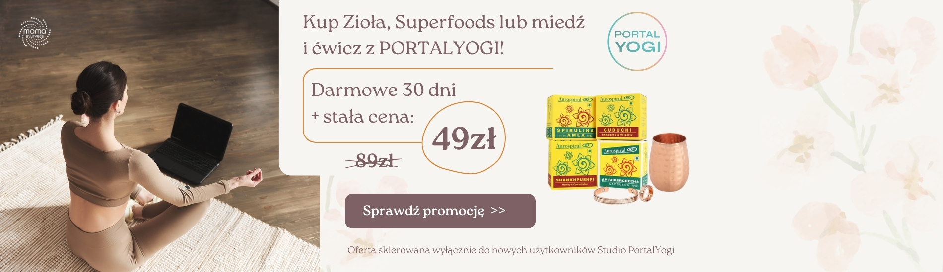 Spirulina, zioła lub wyroby miedziane + dostęp do Studia PortalYogi: Rozpoczęliśmy współpracę ze Studio PortalYogi 💚 Dlaczego? Bo w ajurwedzie cenimy holistyczne podejście do zdrowia – bliska jest nam joga,