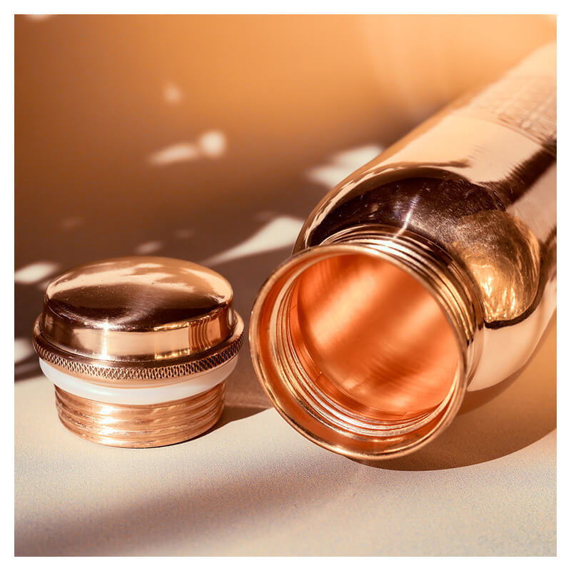 W Ajurwedzie miedź od dawna uznawana jest za metal o szczególnym znaczeniu w codziennej trosce o harmonię ciała i umysłu. Butelka MOMA Ayurveda łączy tę tradycję z prostotą formy, rzemieślniczym wykonaniem i naturalnym pięknem materiału.