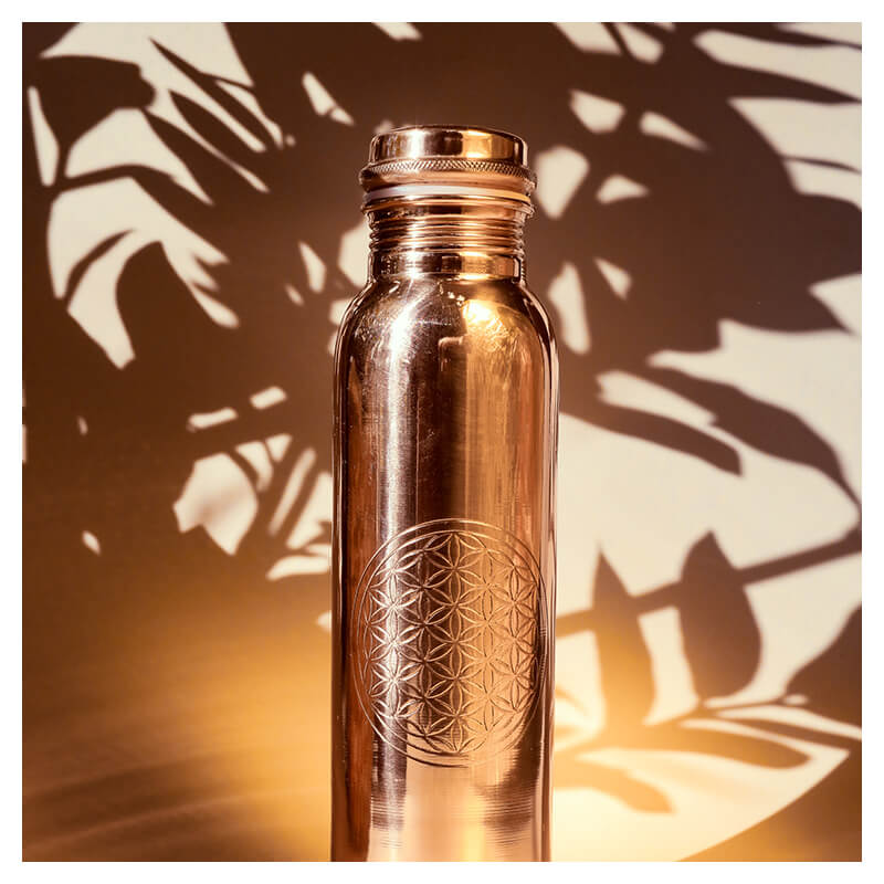 Moma Ayurveda » Sklep » Wyroby z miedzi » Butelka miedziana na wodę | Kwiat Życia | 950 ml