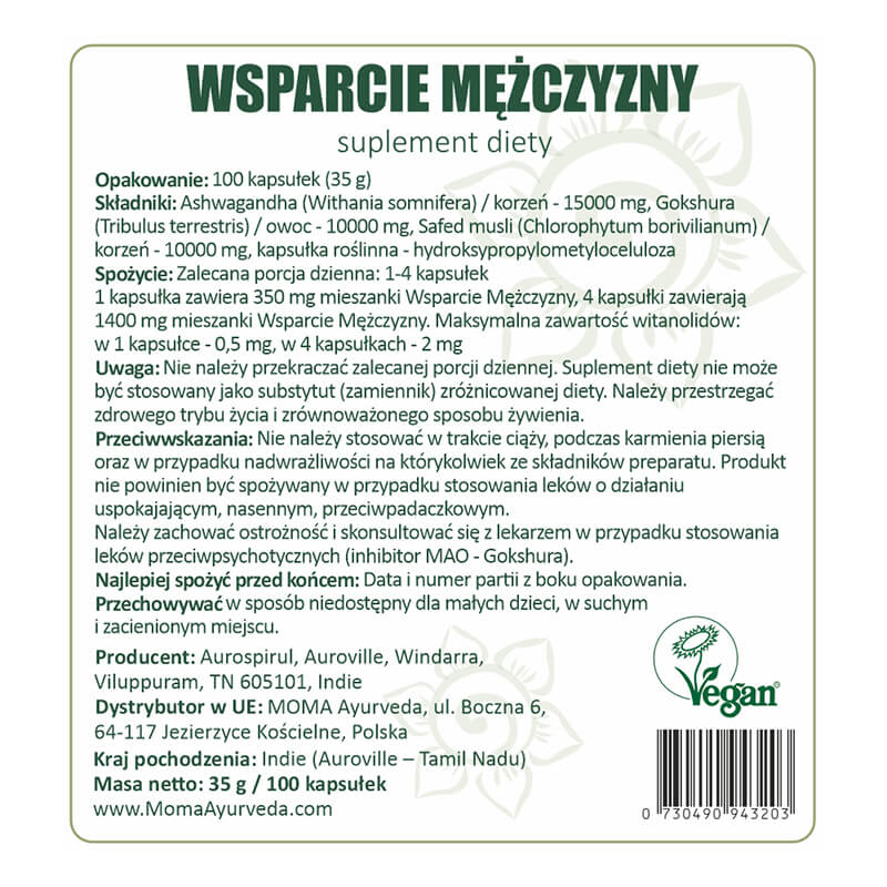 Moma Ayurveda » Sklep » Zioła & Suplementy ajurwedyjskie » Wsparcie Mężczyzny – mieszanka – kapsułki 100 szt...