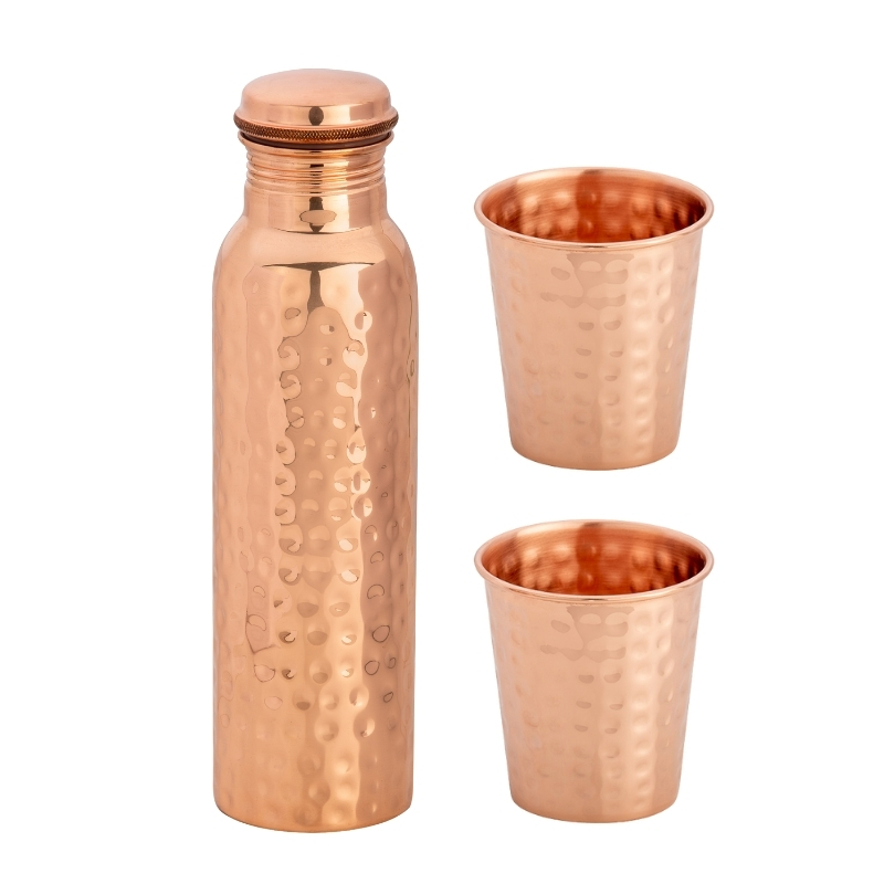 Zestaw miedziany na wodę | butelka + 2 kubki | młotkowany SO1